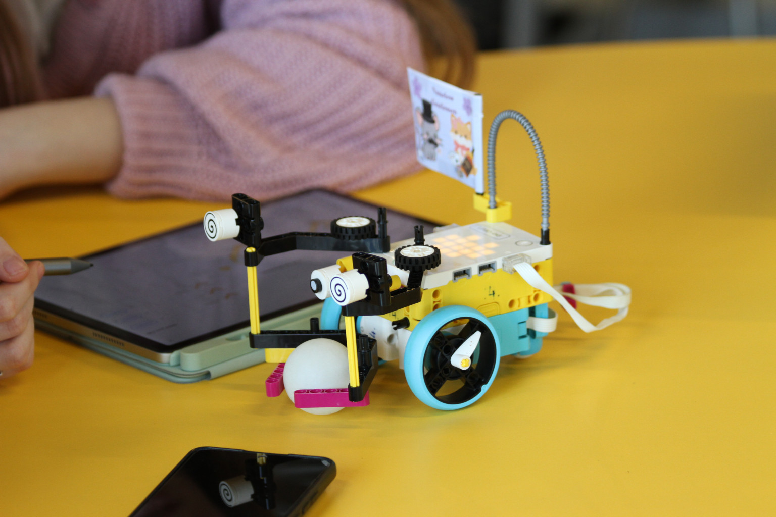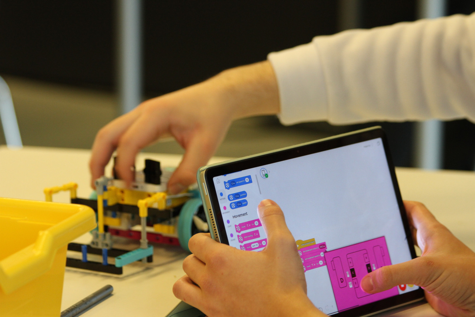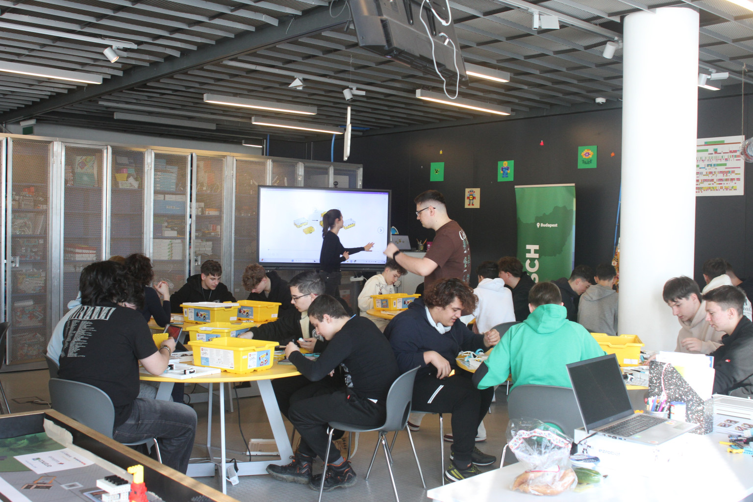 Valós problémák - kreatív megoldások (robotika, szenzorok, programozás): a diákok élményszerű módon ismerkedhettek meg a robotika világával, melyben LEGO SPIKE Prime készletből önállóan megterveztek és megépítettek egy járművet, majd önállóan beprogramozták egy tablet segítségével.