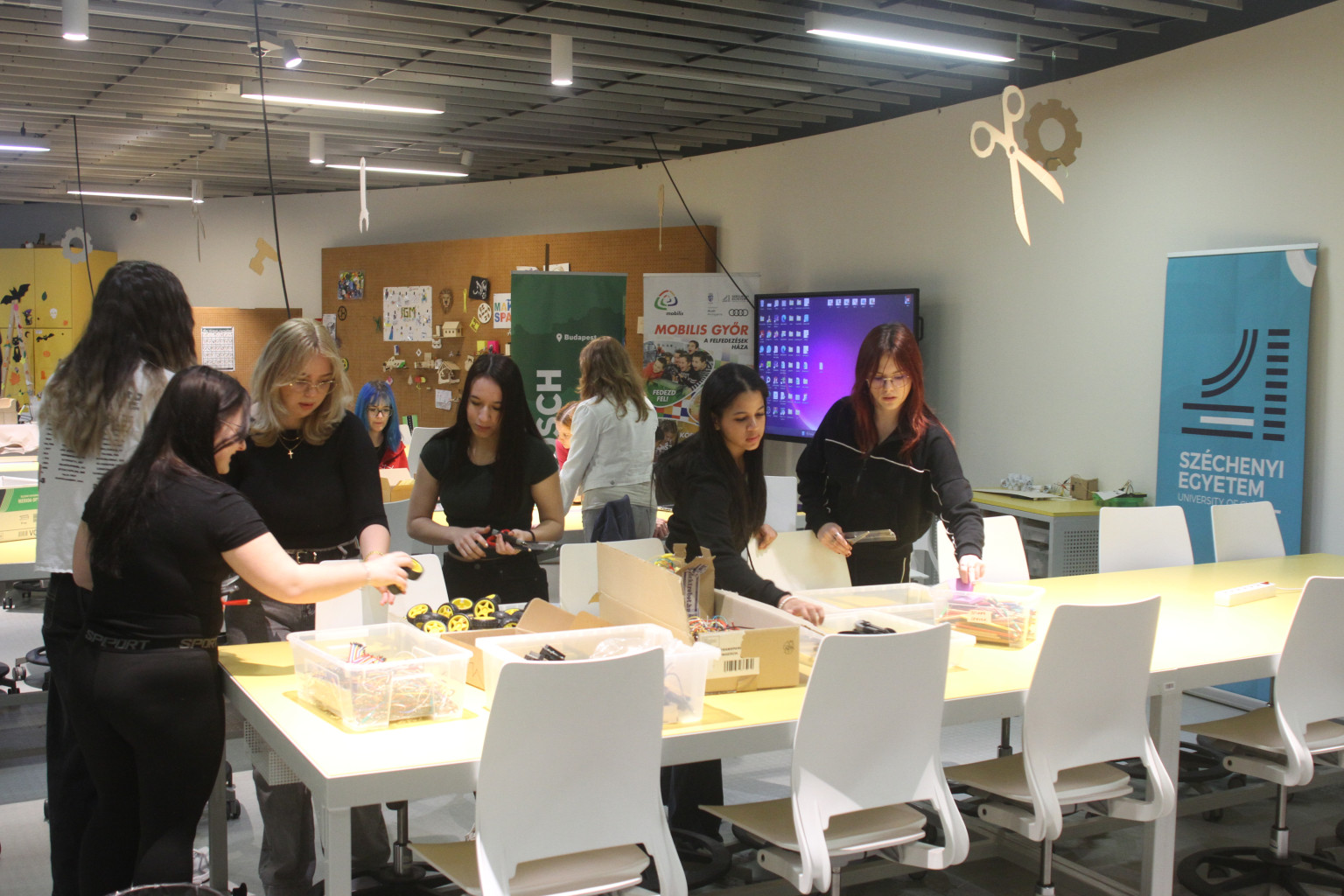 Élményszerű pályaorientáció Mesterséges Intelligenciával: a diákok megismerték, hogyan jelenik meg az AI a Bosch fejlesztéseiben és milyen AI-val kapcsolatos szakmák nyílhatnak meg előttük. A Canva tervezőprogramban megtanulták a helyes promptalkotás alapjait, valamint a Magic Media AI alapú eszközének segítségével logót terveztek. A legnépszerűbb foglalkozás ez volt, erre már az első hónapban elfogytak a szabad helyek.