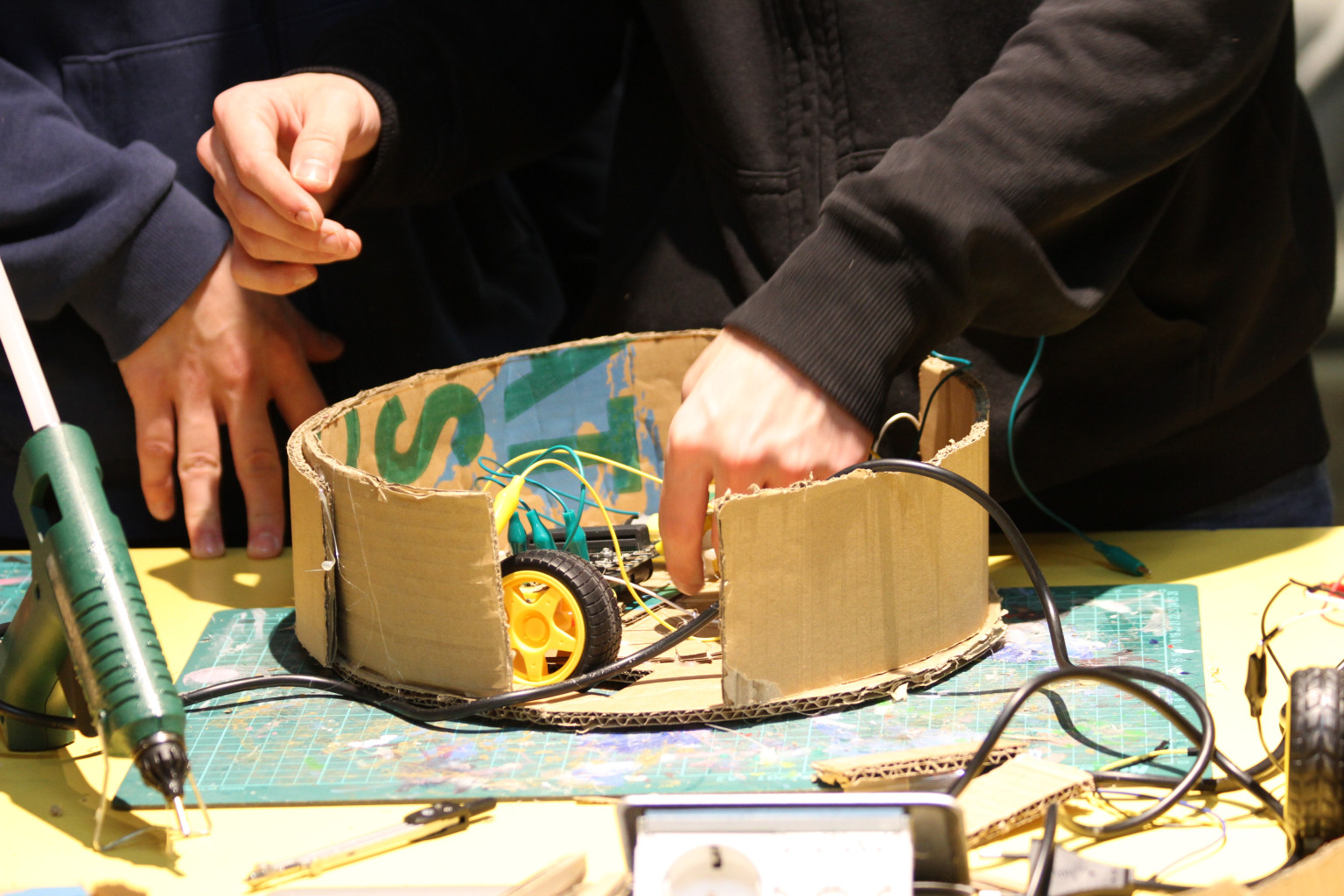 Fenntarthatóság és innováció újrahasznosított anyagokból (mikrovezérlés, irányítás, áramkörök): a foglalkozáson egy robotporszívó prototípusát hozták létre, melynek önállóan kellett közlekednie. Vezérlését micro:bit mikrokontrollerrel valósították meg. A program 100%-ig zero waste szemléletben történt. Az alkalmazott alkatrészeket - motorvezérlő, mikrokontroller, kerekek, vezetékek - többször is felhasználták a különböző foglalkozások során. A diákok megismerkedtek a 3D nyomtatás alapjaival is.