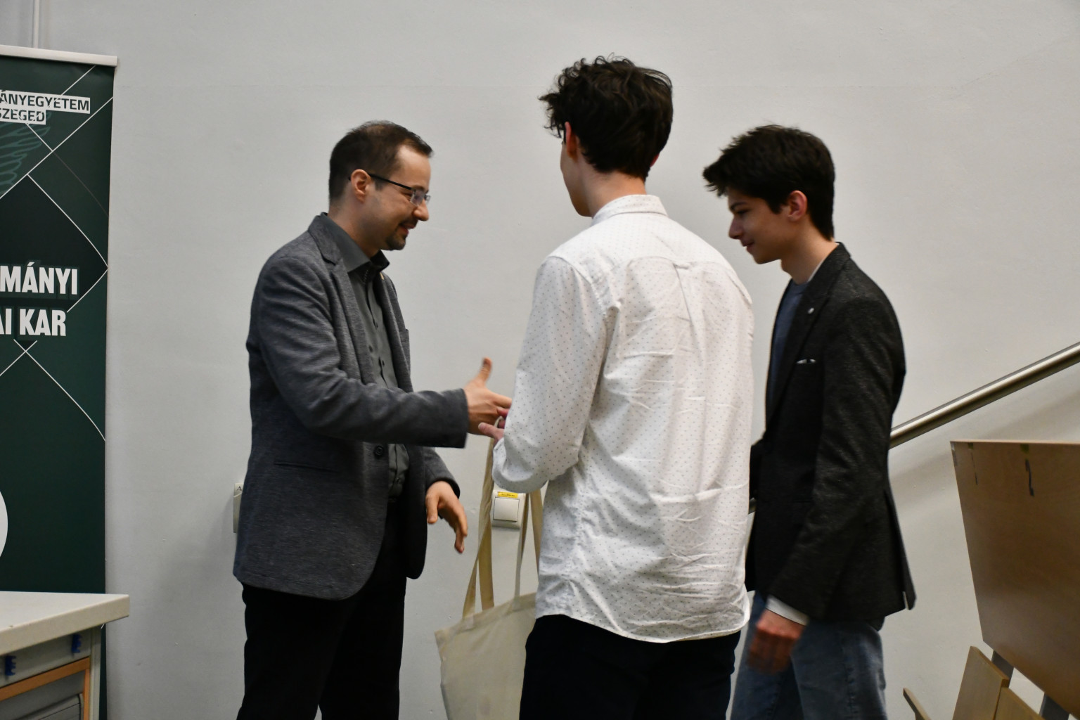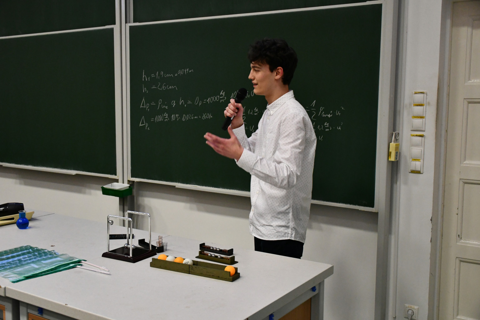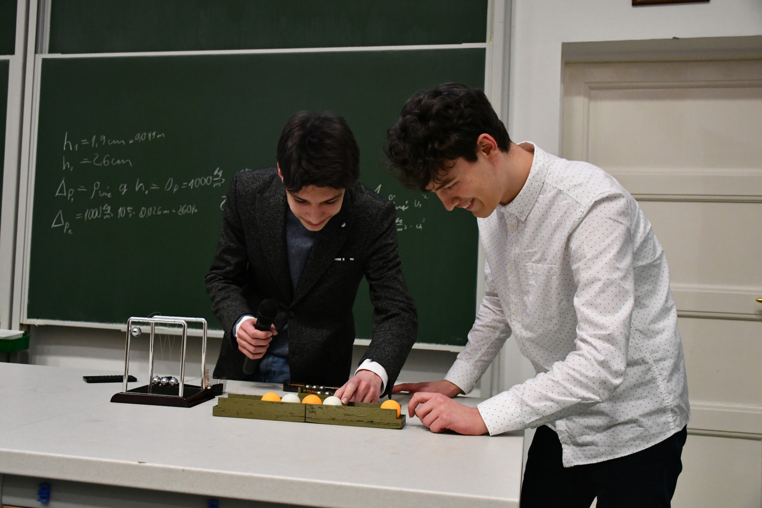 Az első helyezést Börzsei András, Erdélyi Balázs és Győri Áron diákakadémistáink csapata érte el - mindhárman a Kazinczy Ferenc Gimnázium tanulói - akik a közismert Newton bölcső kísérletnek a vízszintesen működő verzióját valósították meg rugók segítségével.